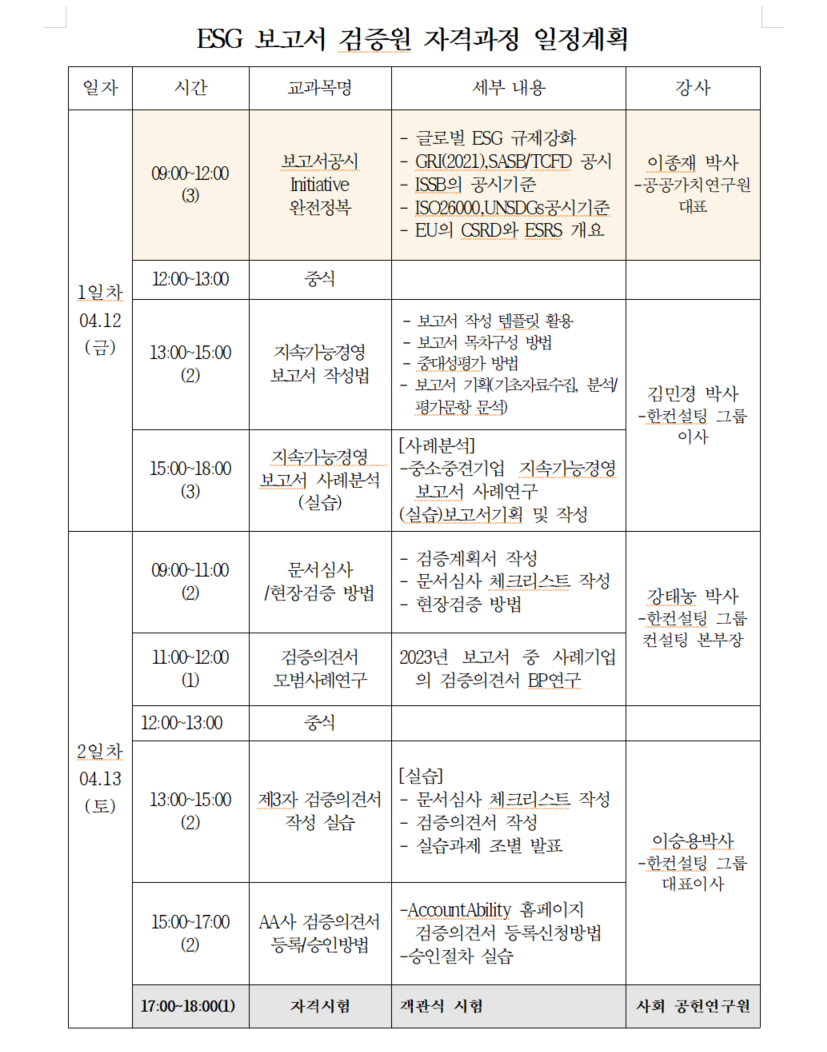 ESG 인증전문가 양성을 위한 " ESG 보고서 검증원 ” 자격과정