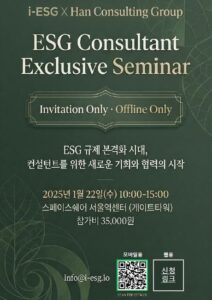 ESG컨설턴트-세미나포스터.JPG By hcg2022|2026-01-22T22:50:44+09:002026년 01월 22일|0 댓글 이글을 SNS로 공유하기! FacebookXRedditLinkedInWhatsAppTelegramTumblrPinterestVkXing이메일 About the Author: hcg2022 댓글을 남겨주세요 응답 취소댓글 다음 댓글 작성을 위해 이름, 이메일 및 웹사이트를 브라우저에 저장합니다.